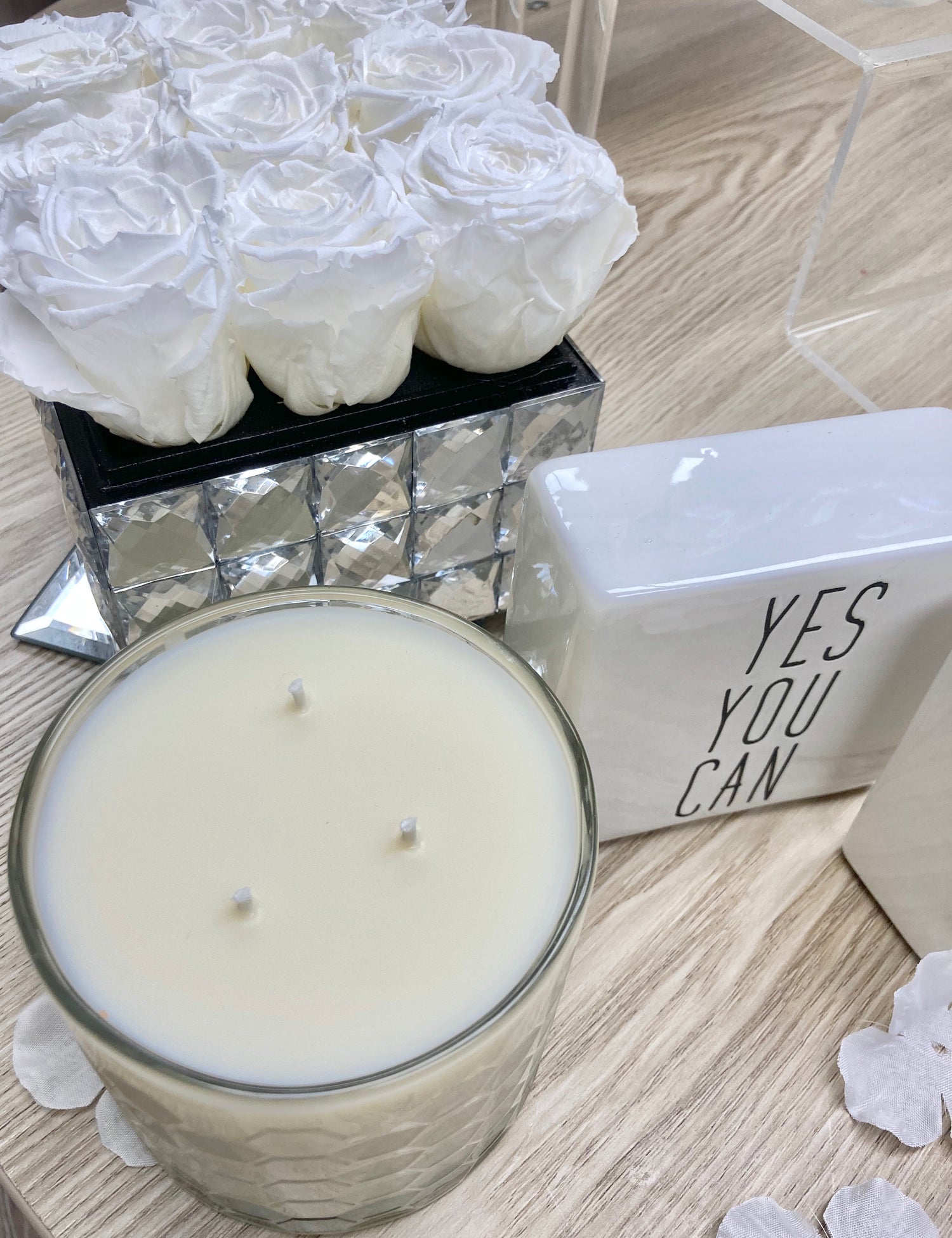This Beautifully Crafted Candle is one for the books! This scent is a fruity fresh blend but a soft delight. This candle is made as a 3 wick and comes in crystal jar that is a heavy glass material.